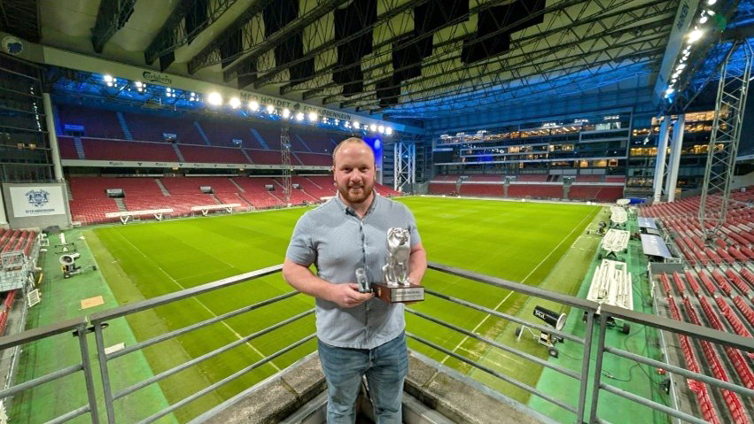 A few years ago, Oliver Deeming would’ve never believed you if you told him he’d end up working abroad — in a football stadium where the sun doesn’t touch the pitch from October to February and the average winter temperature sits around 1°C. Oh, and that in his very first year, he’d be voted both Employee of the Year and Colleague of the Year.