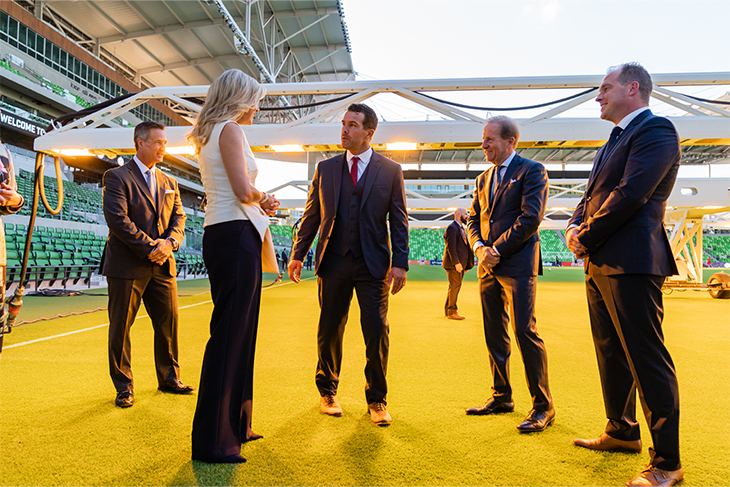“What I find really striking is how many connections there are between Austin FC and the Netherlands. Not only in the team, but also in the stadium. The indestructible turf is the result of a collaboration with SGL. A Dutch company that started out growing roses, but discovered that its knowledge of lighting used for growing plants could be applied in the sports world too. A fine example of innovative thinking that fits right in here in Austin.”