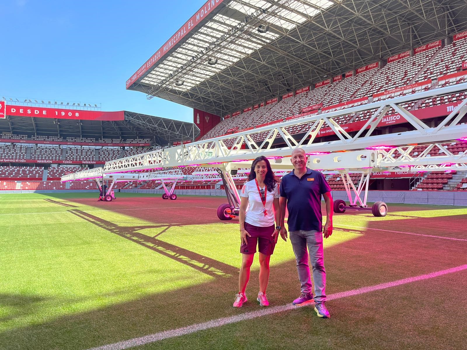 You would think they are easily recognisable by their red-white jerseys, white shorts, and blue socks. However, the outfit draws up a resemblance with kits of two other famous Spanish clubs: Athletic Bilbao and Atlético Madrid. Nevertheless, our focus here is undoubtedly on Sporting Gijón, an ambitious club in the northern region of Spain, Asturias, and its recently appointed Grounds Manager: Eva Sánchez-Céspedes.