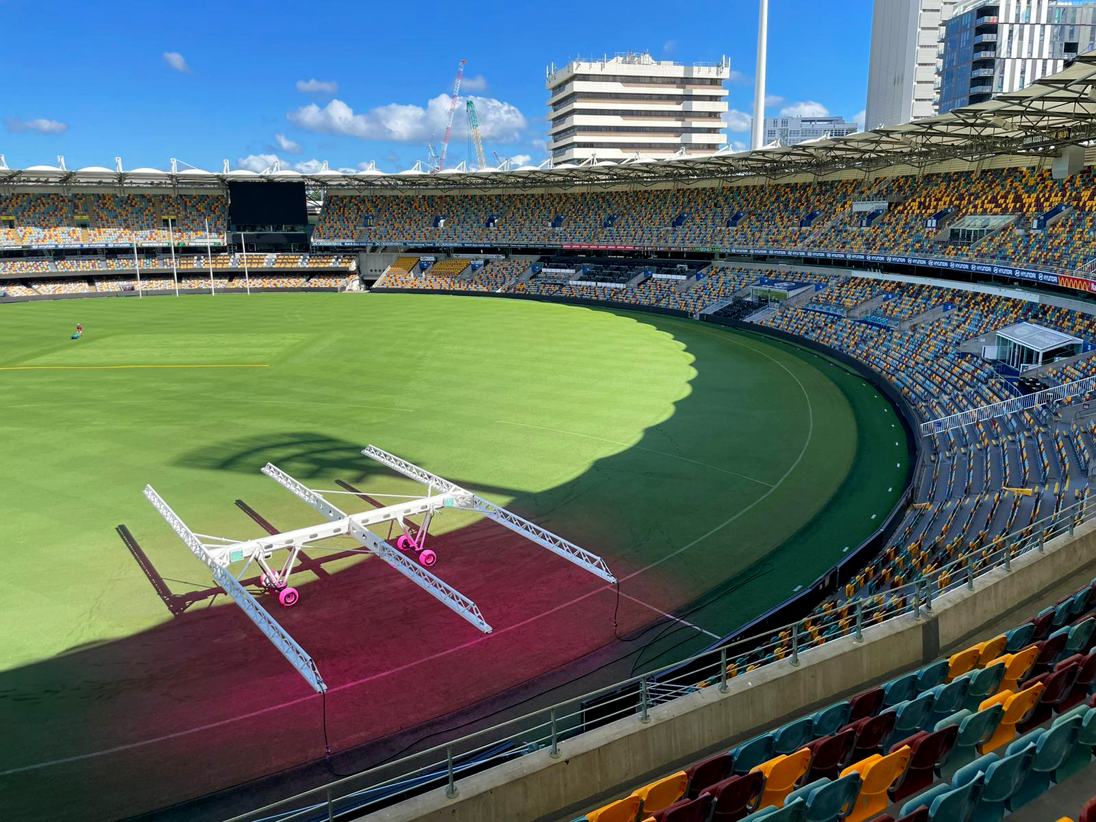 Nine SGL LED440 and three LED120 grow lights on the pitch of MHP Arena in Stuttgart.